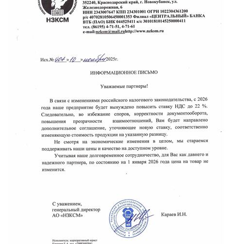 В связи с ростом цен на сырье, энергоресурсы, и увеличением себестоимости продукции АО "Новокубанский завод керамических стеновых материалов" вынуждены повысить цены до 5 %. Не смотря на экономические изменения в целом, мы стараемся поддерживать наши цены и качество товара на доступном уровне!
